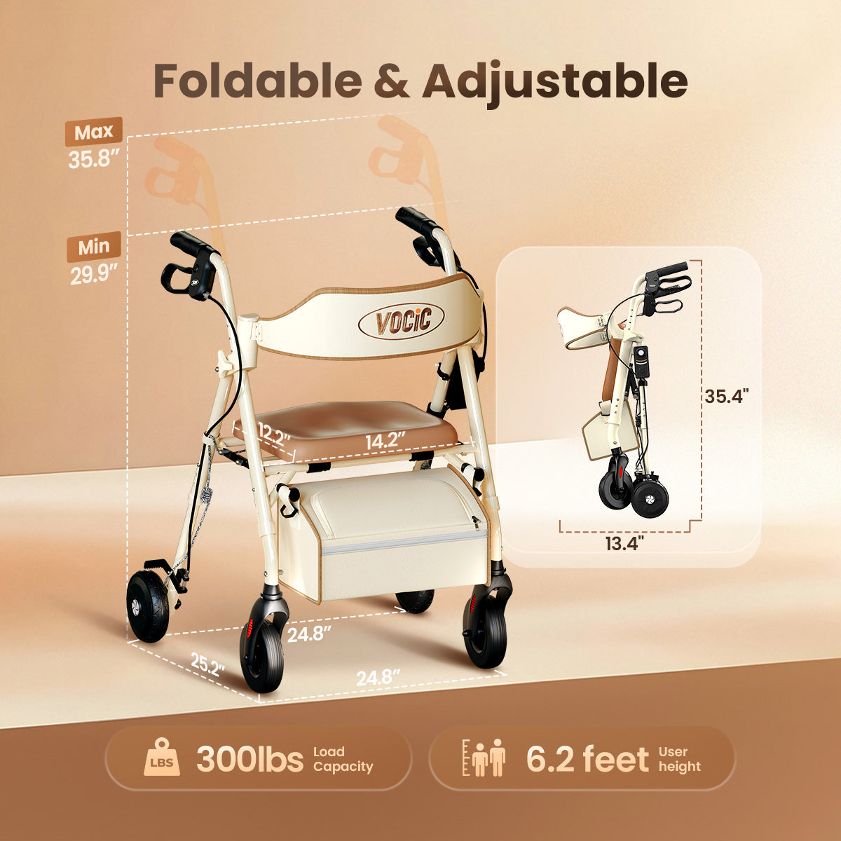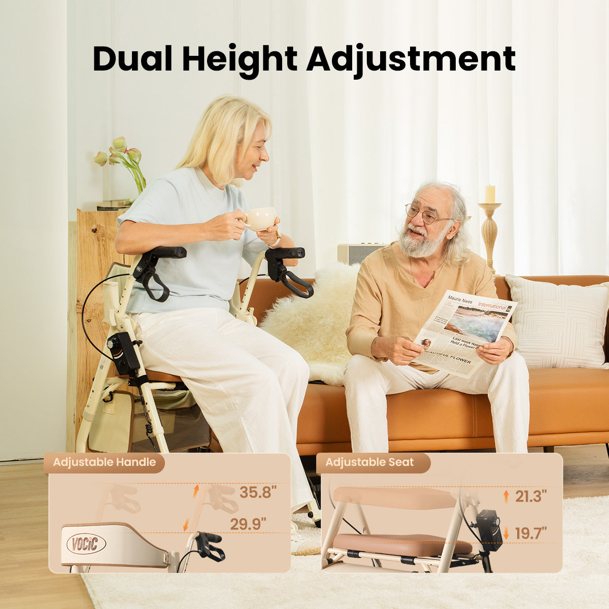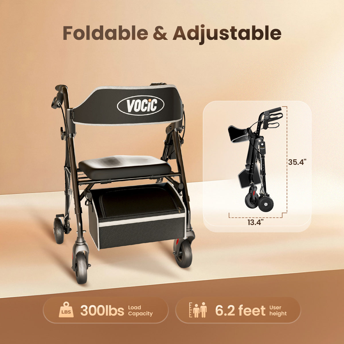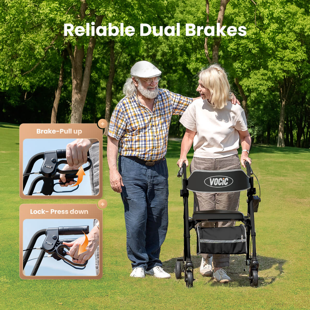 VOCIC Z63 Classic Rollator Walker comes with a spacious storage bag and front-wheel reflectors for enhanced safety and convenience. Thoughtfully packaged in an elegant gift box, it makes the perfect health-conscious present for your loved ones.
