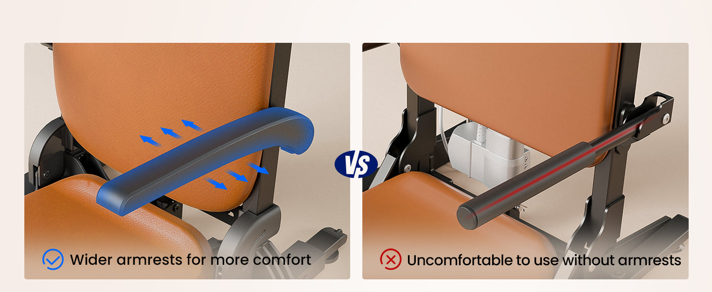 The only chair lift recommended by Professional Paramedics, reducing fall risks by 80%. Its ergonomic armrests and safety belts ensure secure transfers, making it ideal for home or rehabilitation centers. Ideal for the disabled and others who are prone to falls with unchanged legs.