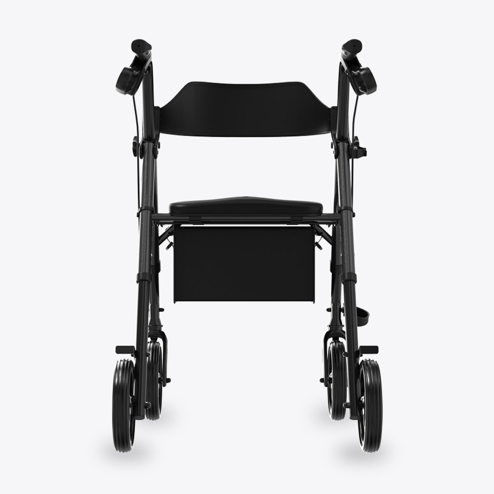 Pull up the brakes to decelerate or stop while walking forward; press the brakes before sitting down to lock the wheels in place. Rollator walker provide an extra layer of security for your walks.