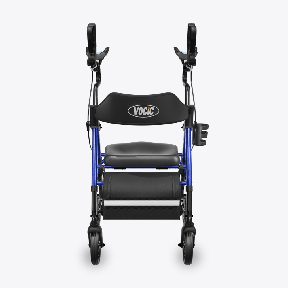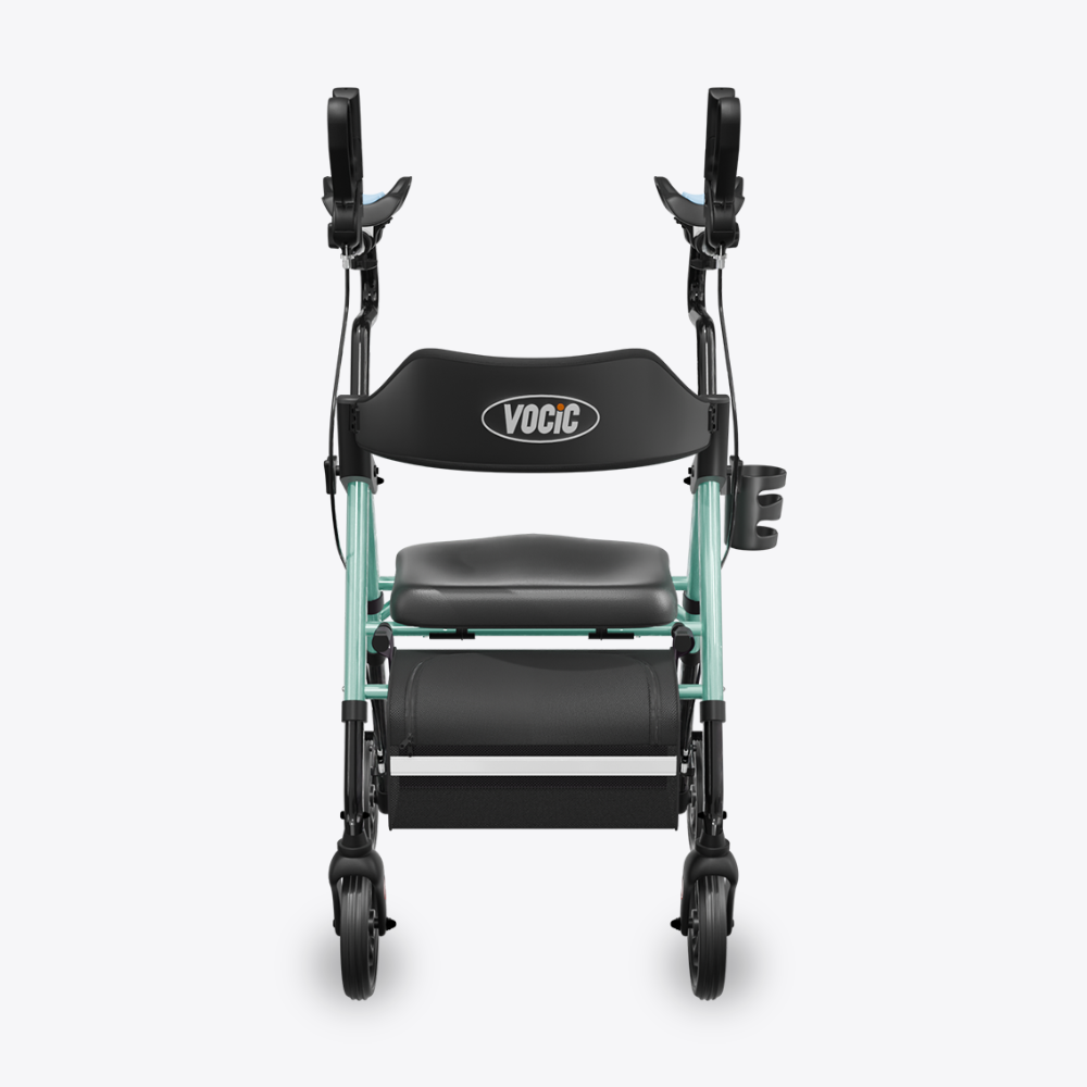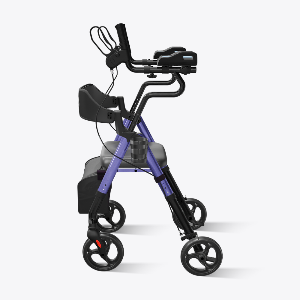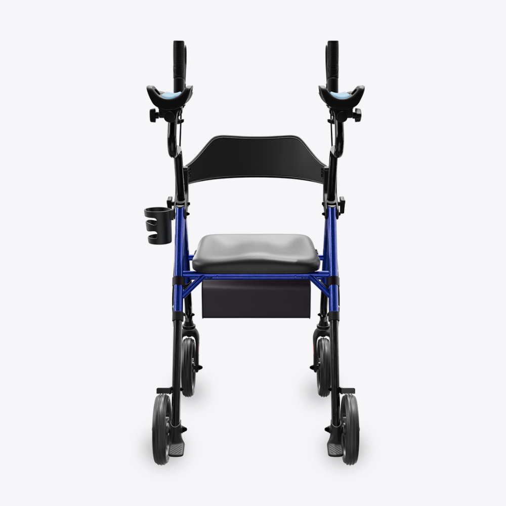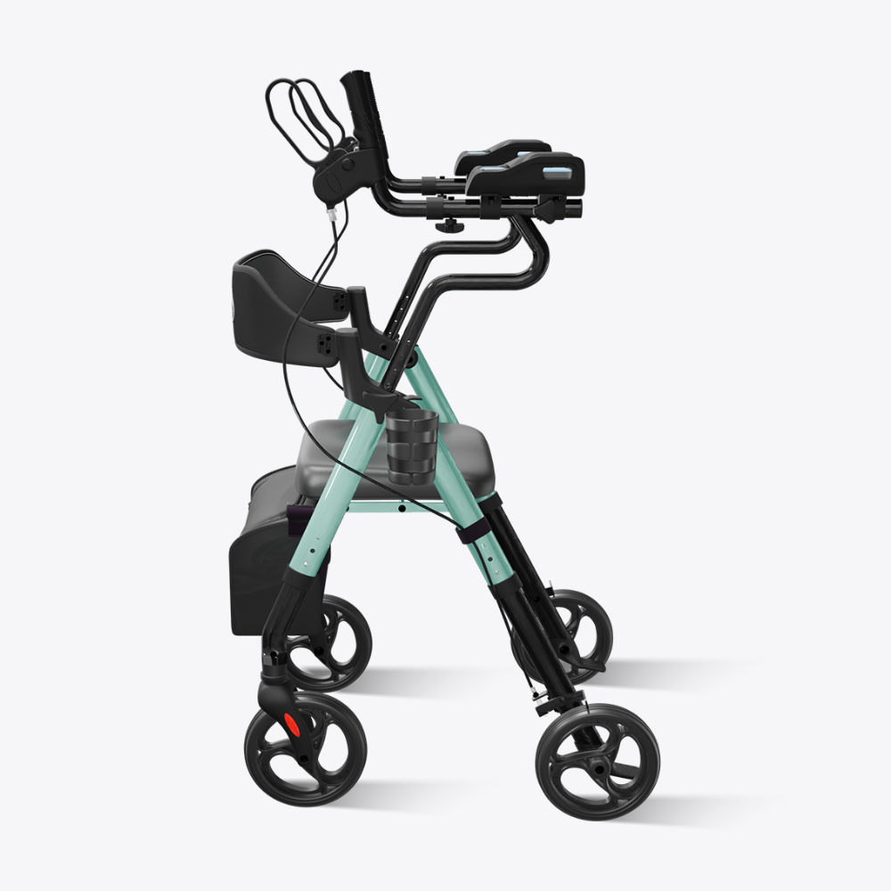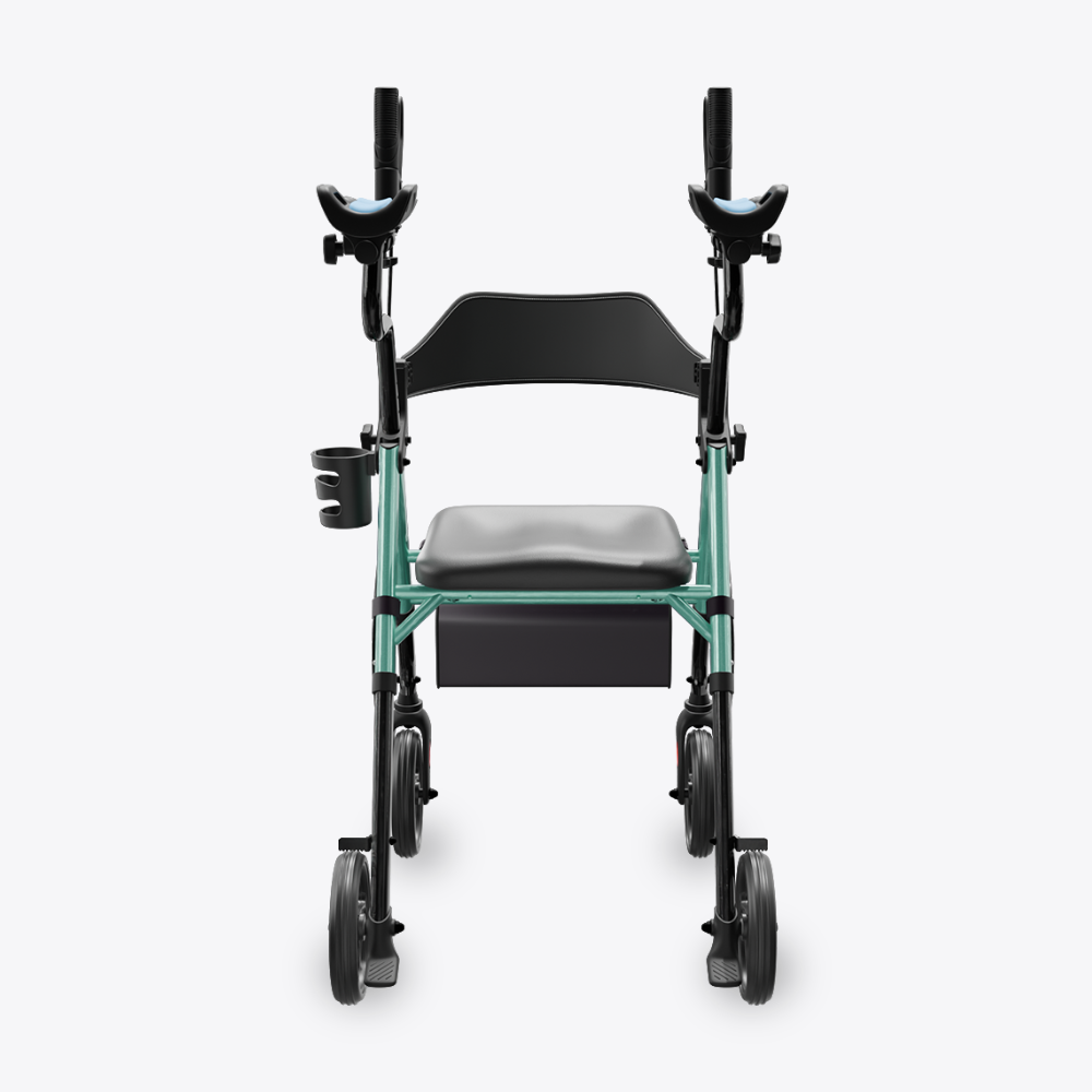 The flip-away armrest design eliminates the seat-width interference seen in traditional walkers, giving users more space and a more comfortable sitting experience—all while maintaining stable, supportive mobility.