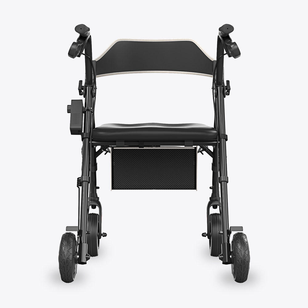 The Z63 indoor walker has been designed for dependent individuals who need assistance walking and do not want to lose their independence. It has three levels of damping adjustment to deal with the risks of walking on slopes. The charging-free damping system eliminates the anxiety of battery life, and the iron-aluminum composite frame balances load-bearing and portability. The ergonomic seat cushion disperses 85% of the sitting pressure, and the 105° wrap-around backrest enhances the sense of security. The adjustable armrest/frame height adapts to personalized needs, and the reflective storage bag enhances night travel safety. The maximum load-bearing capacity is 300 lb.