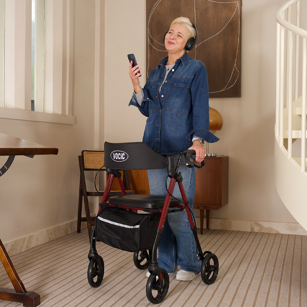 Pull up the brakes to decelerate or stop while walking forward; press the brakes before sitting down to lock the wheels in place. Rollator walker provide an extra layer of security for your walks.