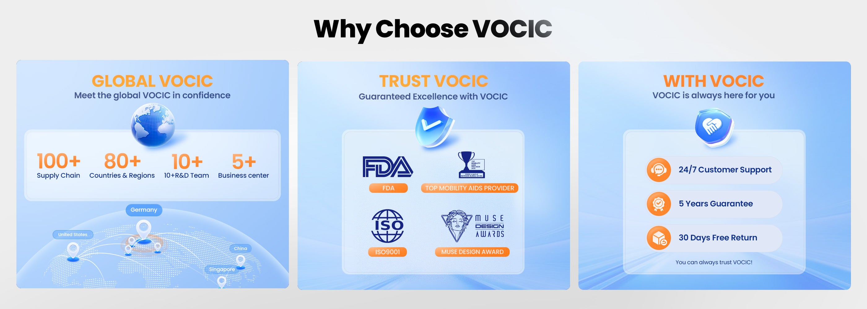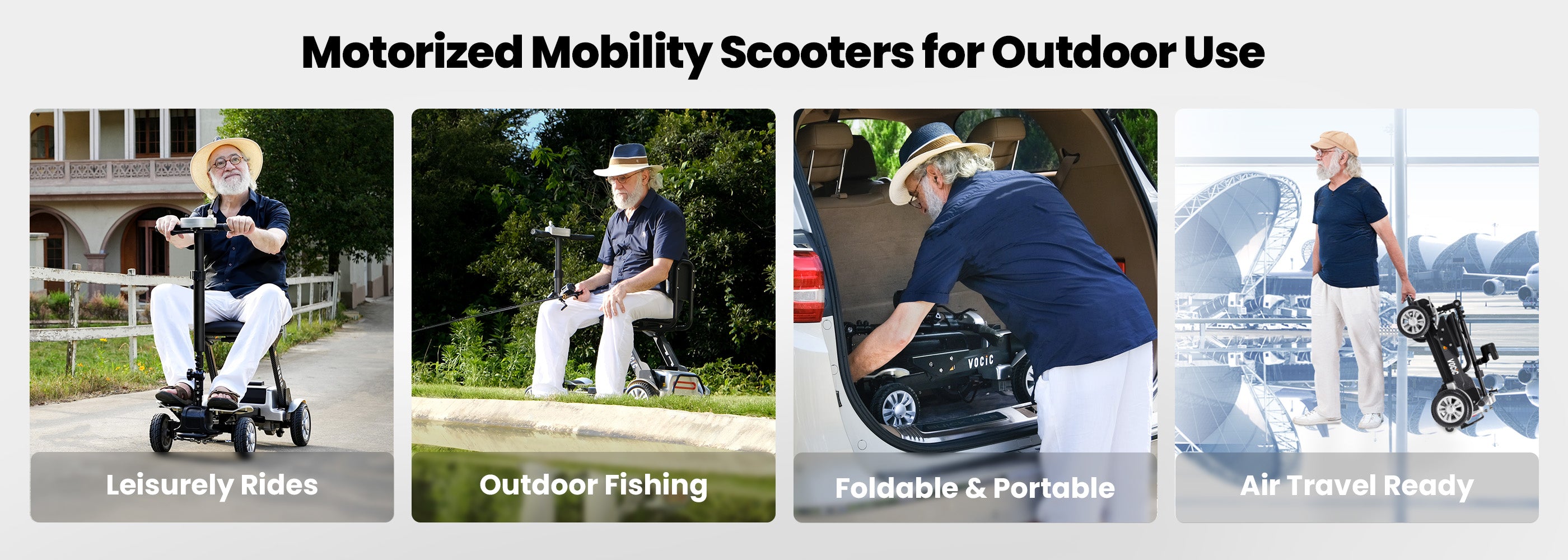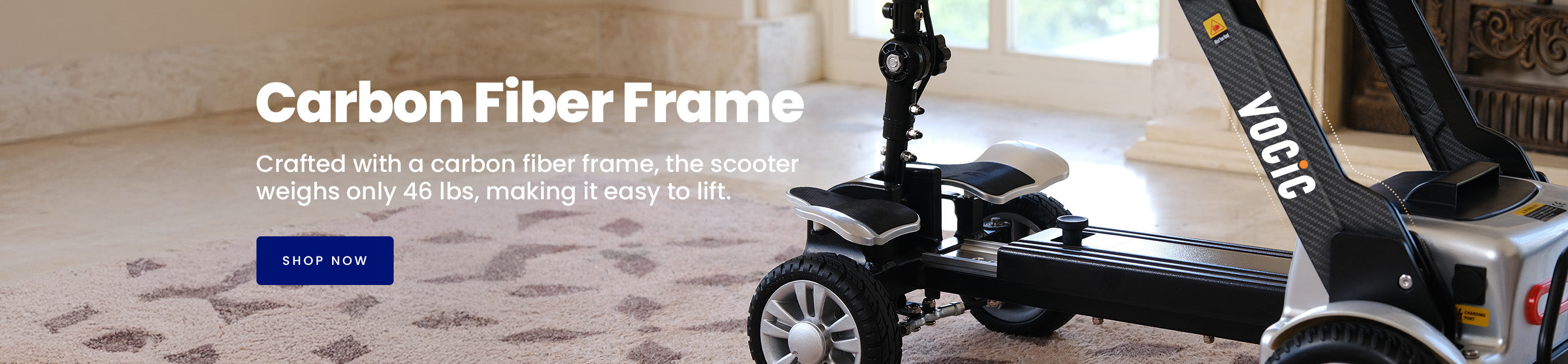 The VOCIC D71 lightweight mobility scooter weight is only 46lbs. It features an advanced carbon fiber frame, which is approximately 40% lighter than aluminum. Even seniors can easily lift it on their own.