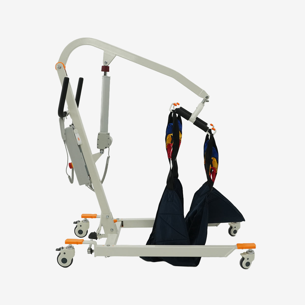 Our home electric elevator is designed to assist the elderly, disabled, patients, and anyone in need with lifting or short distance transfers, ground level lifting, such as from bed to wheelchair, from wheelchair to sofa, or from shower chair to bathtub elevator, in multiple scenarios. The base width is adjustable with pedals, casters with brake, 360 ° rotating sling hooks, and is equipped with breathable U-shaped slings. Learn more on How to Lift and Transfer an Overweight Senior?
