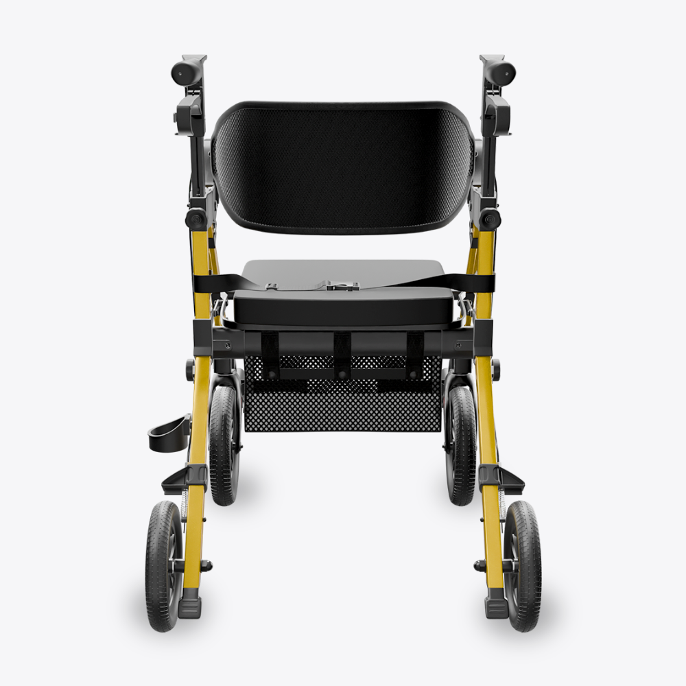 The Z51 walker is designed for individuals who require support while walking but value their independence. Its raised backrest shifts the center of gravity for safer seating, while airless rubber tires provide strong traction on any terrain. At 25.2” wide, it fits easily through standard doorways, and the one-hand folding design makes it convenient to carry and store. With 10” front wheels and an adjustable handle, it ensures smooth outdoor mobility. Durable yet lightweight, the Z51 supports up to 300 lbs with confidence.