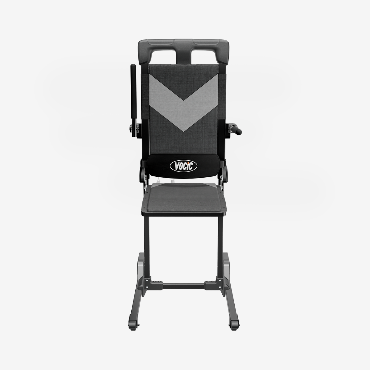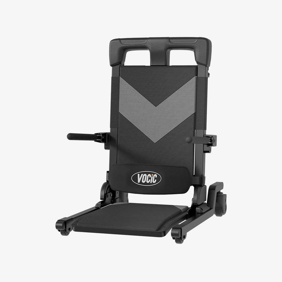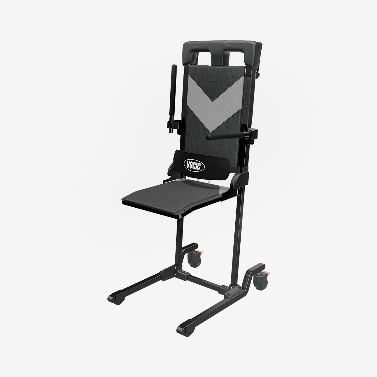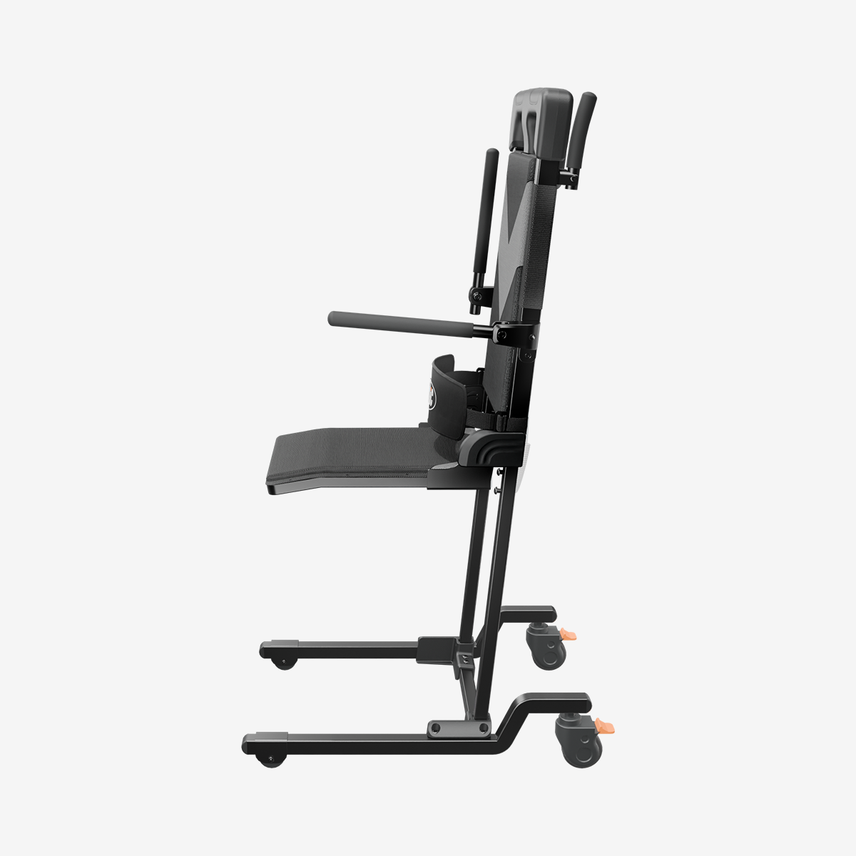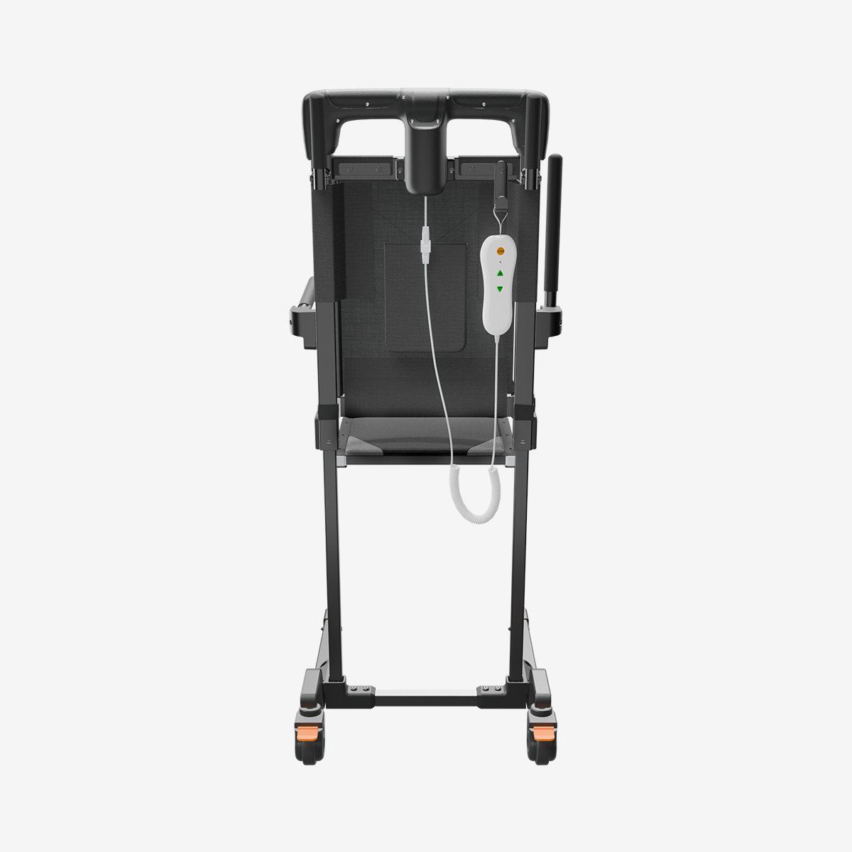 The four wheels at the base allow the chair to be moved easily, and it can even be pushed a short distance while the user is seated.